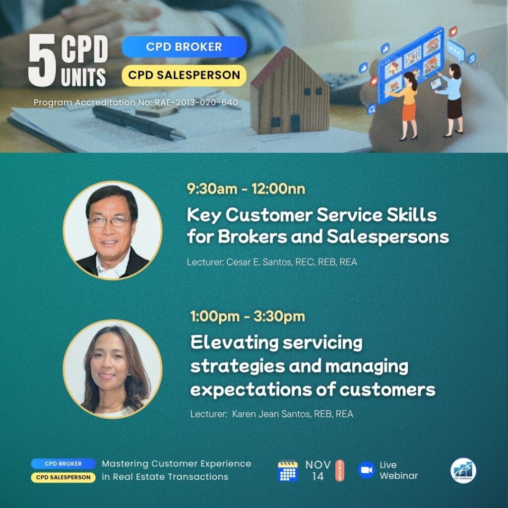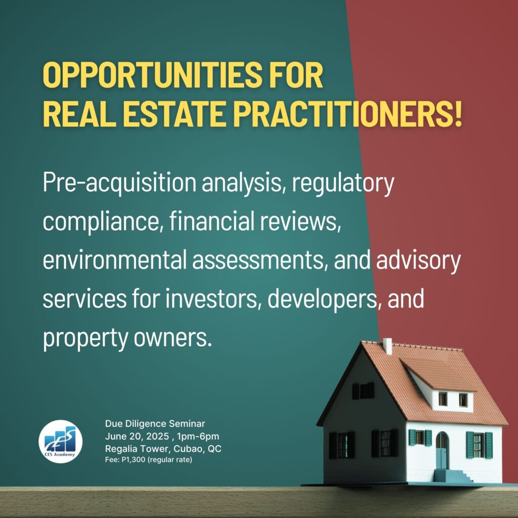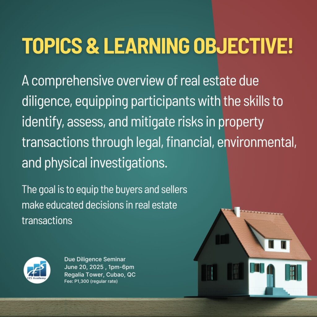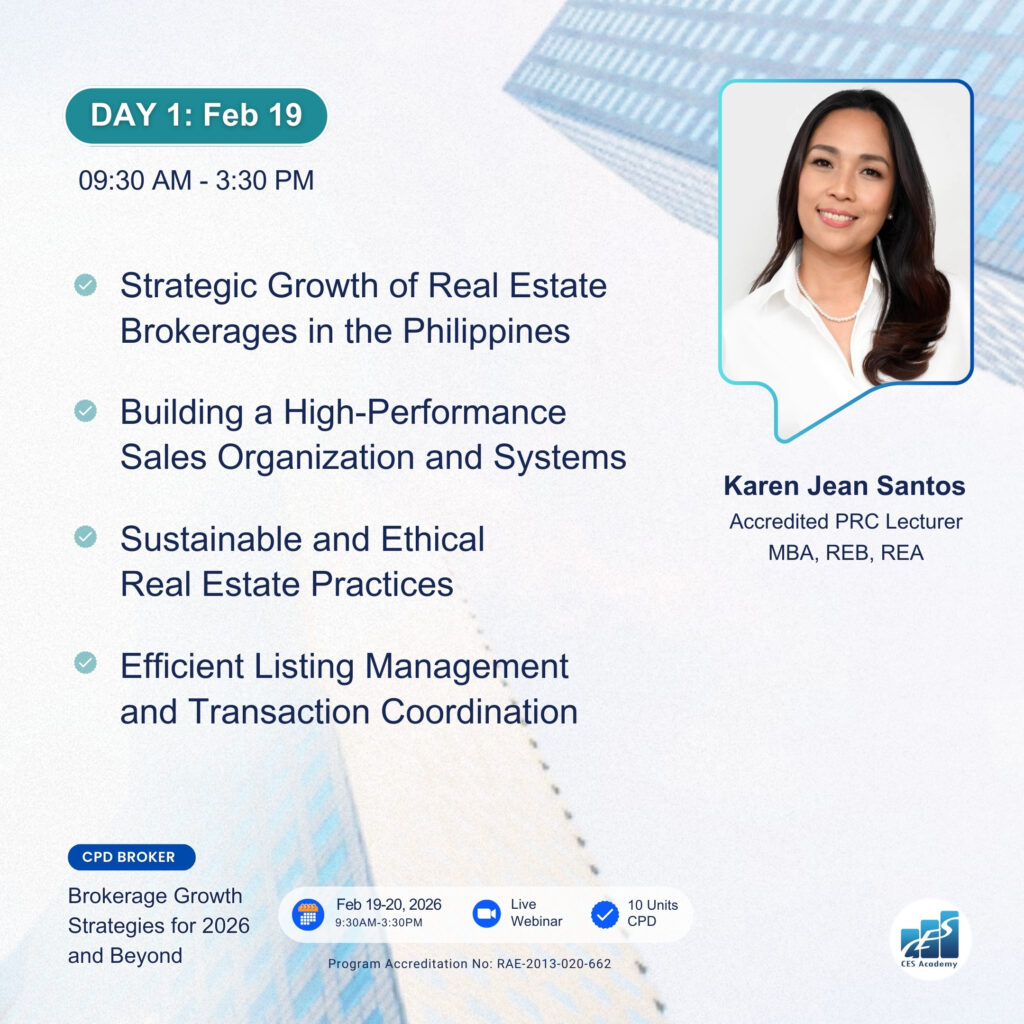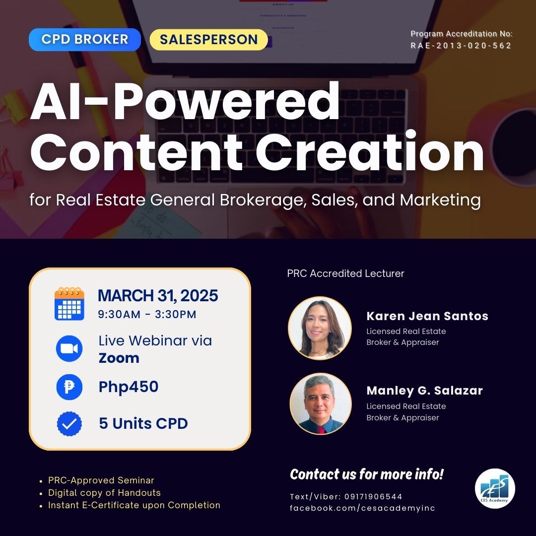 CES Academy is a SEC-registered and PRC-accredited provider of real estate education and training in the Philippines. It is the best choice of review center when opting to take the PRC Broker’s and Appraiser’s Licensure Examinations. Likewise, it offers seminars and workshops on special areas like Documentation and Registration, Due Diligence, Real Estate Marketing, Property Management, Basic Appraisal, and Estate Planning, to name a few.